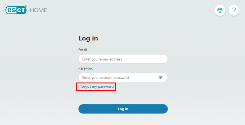 نحوه بازنشانی رمز عبور ESET HOME را بدانید! بازنشانی رمز عبور ESET HOME از طریق رابط وب ESET HOME : ESET HOME را باز کنید و روی پیوند رمز عبور خود را فراموش کرده ام در زیر ورود به سیستم کلیک کنید.