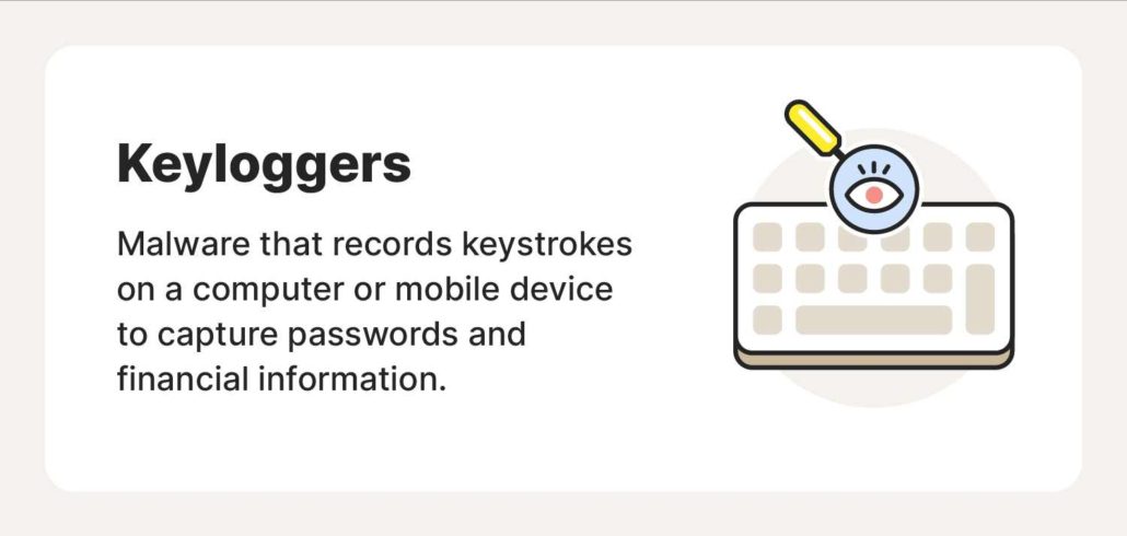 کیلاگر نوعی جاسوسافزار است که کلیدهای فشردهشده توسط کاربر در رایانه یا الگوهای ضربه زدن او در دستگاههای تلفن همراه را ثبت میکند. اگر یک کیلاگر در دستگاهی فعال باشد، یک هکر میتواند به همه چیز از پیامهای شخصی و ایمیلها گرفته تا رمزهای عبور دسترسی پیدا کند. آنها همچنین میتوانند به اطلاعات مالی مانند شماره کارت اعتباری و اعتبارنامههای ورود به سیستم دسترسی پیدا کنند .